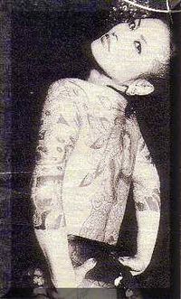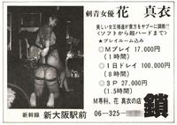 Mai Hana made her debut as Eikichi Osada's partner at SAMM in 1980. She started a self-bondage show at SAMM, and with her trademark tattoos and having appeared in a great number of Shintoho and Nikkatsu movies and videos, she established her reputation as a charismatic mistress.