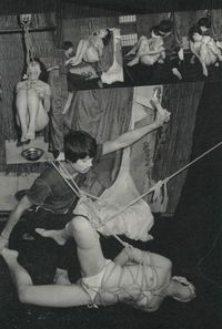 | + | 1982: On June 12th, '''Kurokawa''' is tied by [[Denki Akechi]] at a post-theater performance photo group called "Rope Bondage Girls ~Gag Edition~". | ||